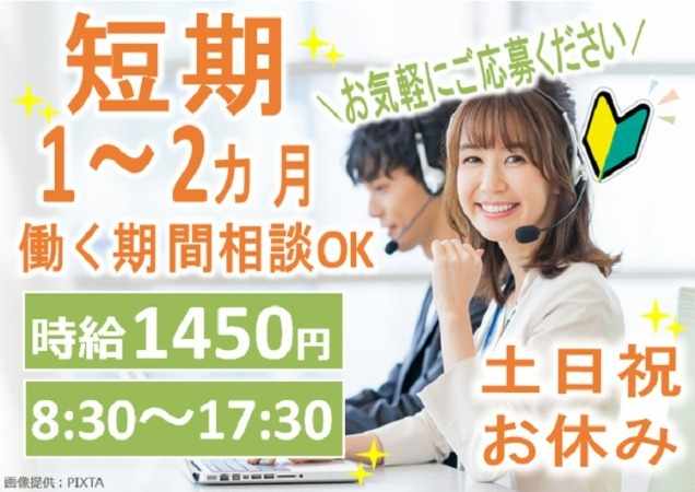 短期1~2カ月で働く期間相談OK!/残業なし/土日祝休み/未経験でも高時給1450円